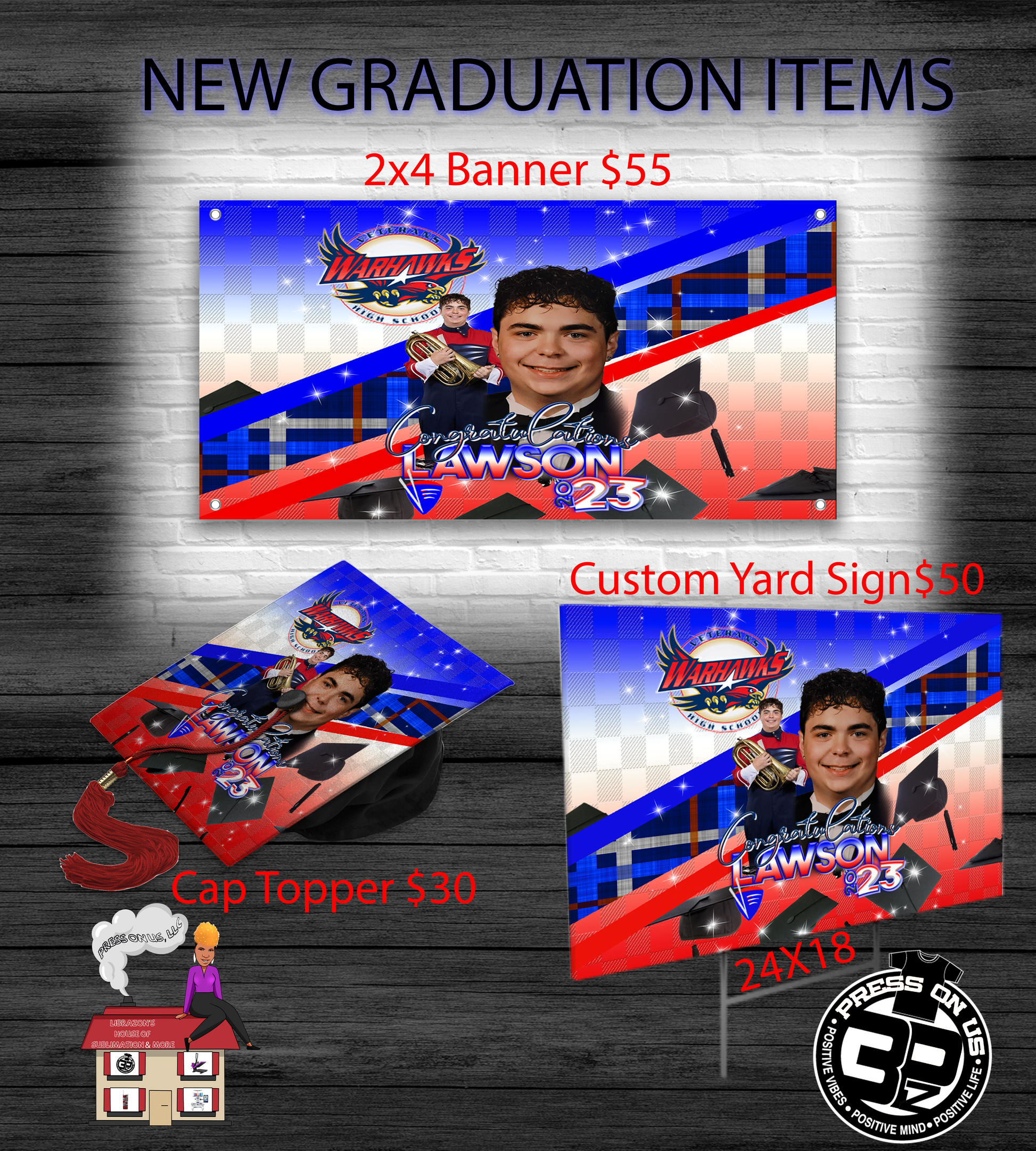 Yard signs are a popular way to celebrate graduation and to show support for the graduate. These signs are small and portable, and can be easily displayed in a yard, on a fence, or in a window. They are often personalized with the graduate's name, picture, or school mascot, and can be customized with a variety of colors and fonts. Yard signs are a great way to announce the graduation to the community, and to show pride in the student's accomplishments. They can also be used as a way to direct guests to the graduation party or ceremony.